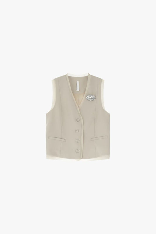 Pantalone vita alta palazzo con pence e spilla beige IMPERIAL