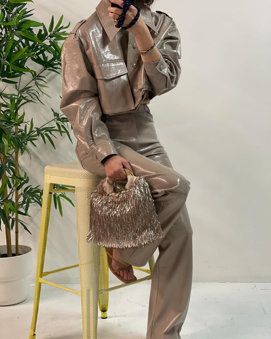 Pantalone gamba dritta vinile beige LC240357 LUMINA