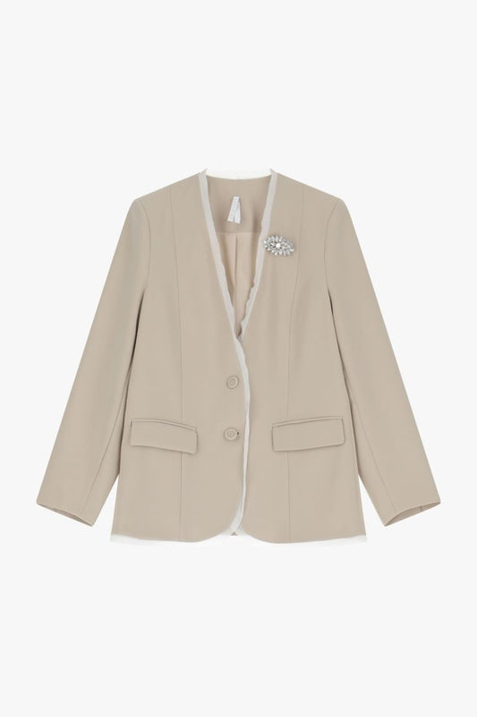Blazer taglio dritto senza rever beige con spilla IMPERIAL