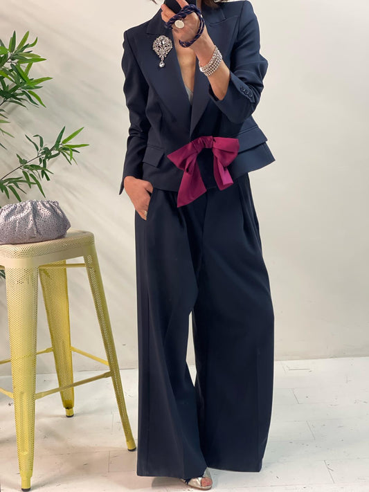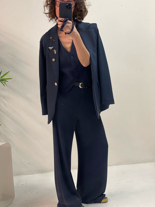 Giacca in felpa taglio dritto blu con spille 25B6789 TENSIONE IN